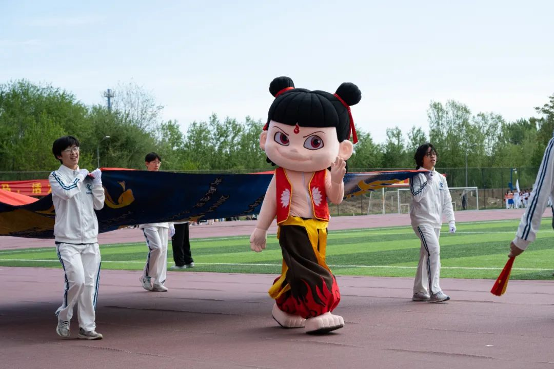 各学院方阵相继入场。“哪吒”风火轮疾驰,“敖丙”定海珠生辉;折扇翩然,将少年意气泼洒天地;用彩虹飘带织就花朵,勾勒青春意趣;吉祥物萌趣出场,与师生们热情互动;舞龙戏珠,舞出豪迈气势;民族舞蹈、太极武术让人目不暇接……在这场运动盛会上,蓬勃朝气的身影,让校园充满青春的光芒。