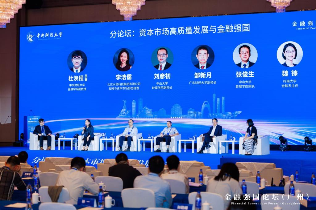 分论坛1圆桌对话环节,五位嘉宾就“资本市场高质量发展与金融强国”这一主题进行深入讨论。广东财经大学副校长邹新月教授指出,“金融强国”的提出反映了其在百年未有之大变局下的必要性,金融虽以利润为本质,但中国特色金融发展之路需兼顾人民性、政治性和功能性,金融强国建设需要“有效市场”与“有为政府”相结合手段,“法治”与“德治”相融合机制,以保障金融的健康发展。中山大学管理学院院长张俊生教授指出,当前证券监管模式仍是以静态规则导向为主,建议向动态调整规则导向或者原则导向转变。中山大学岭南学院副院长刘彦初教授从期货和衍生品市场的高质量发展对建设金融强国的积极作用的角度,强调其价格发现、风险管理和资源配置的三大主要功能,及其服务实体经济的重要使命和本质特色,建议多方合力提升期货和衍生品行业人才培养质效、加强政策和舆论沟通联动、有序扩大期货品种覆盖范围和期货市场高水平开放。岭南大学金融系主任魏铼教授指出,香港在建设金融强国中扮演纽带、桥头堡和蓄水池的三重角色,重点阐述金融发展如何从资本市场创新端激发活力,吸引耐心资本,将发展成果反馈给内地。北京水滴科技集团有限公司战略与资本市场部总经理李洁儒从上市企业资本运作的视角指出海外资本市场对中国企业存在诸多挑战,新发展周期中,更多企业积极寻求拥抱中国资本市场,并聚焦中国统一大市场获得新的业务增长。分论坛1由世界杯直播金融学院杜涣程副教授主持。